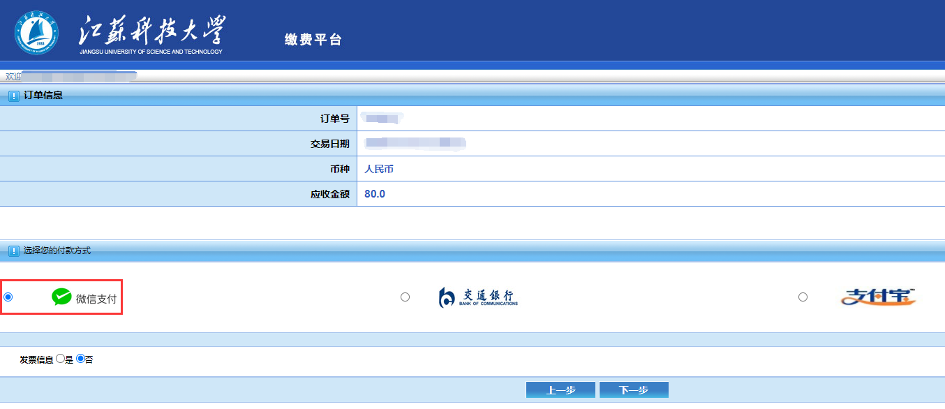 2.缴纳复试费(推荐使用微信支付);